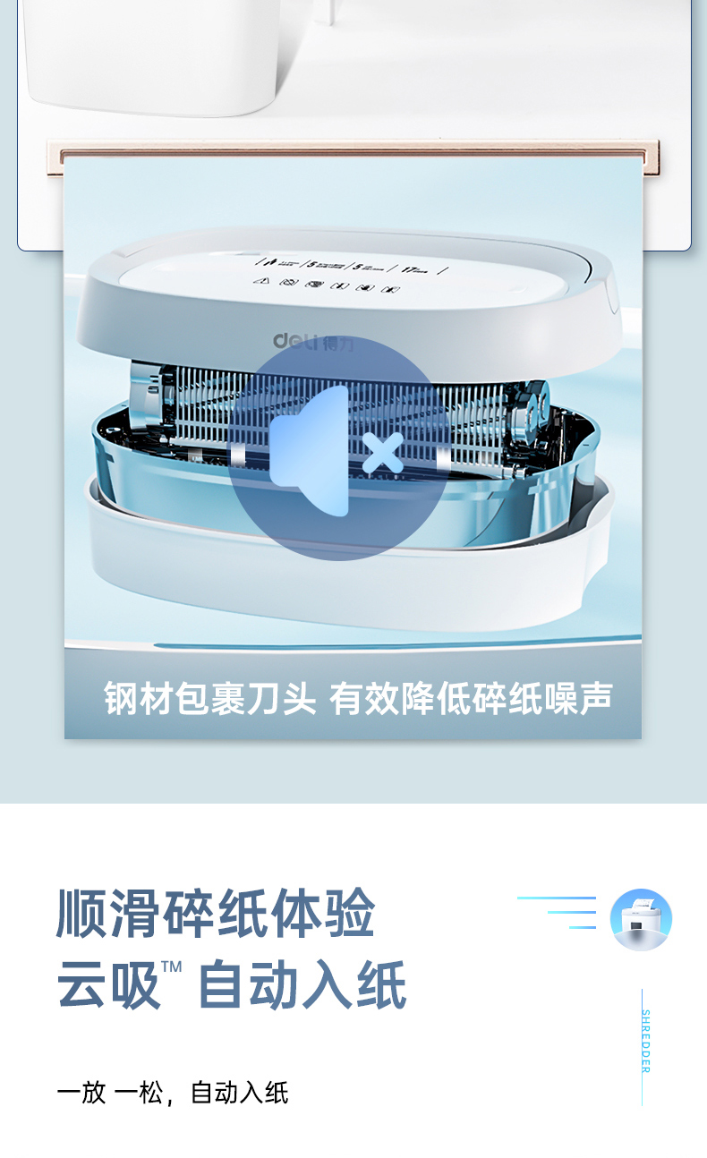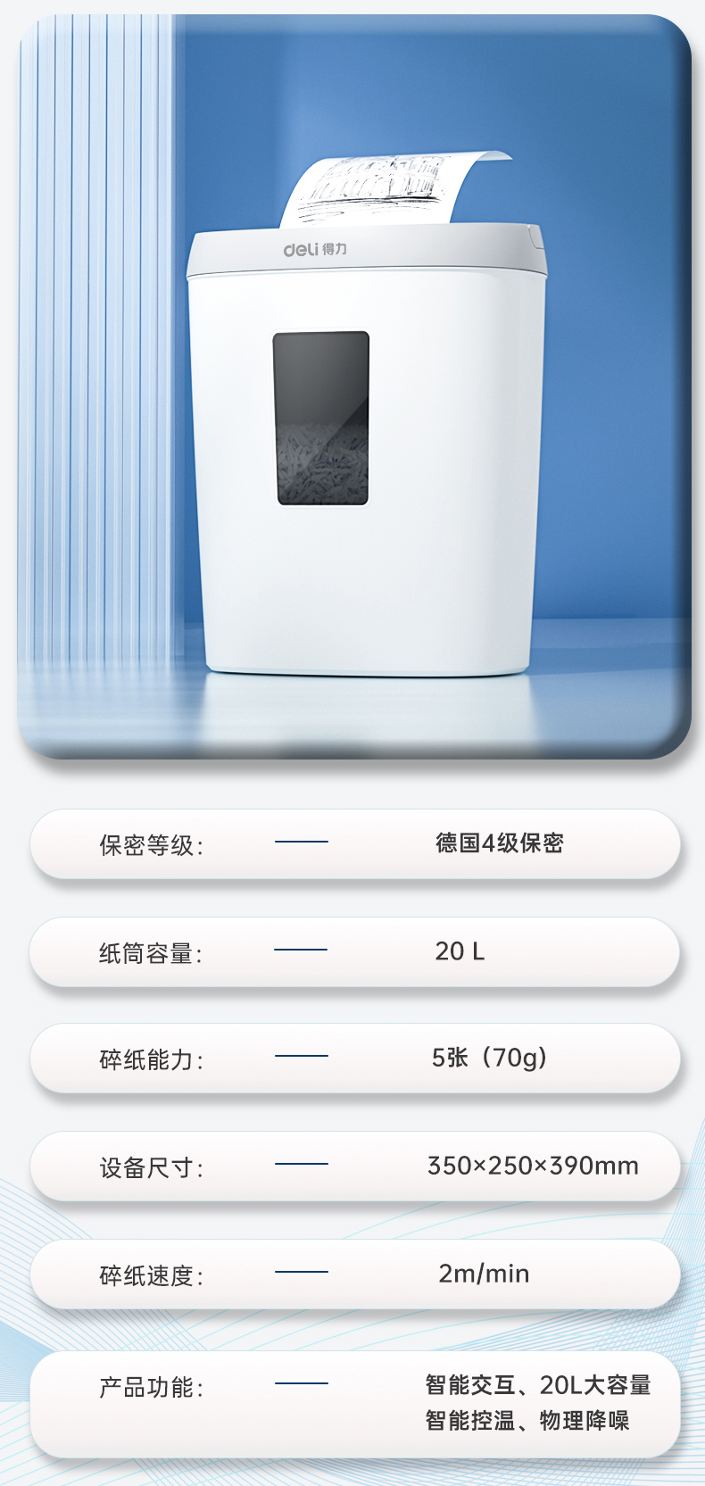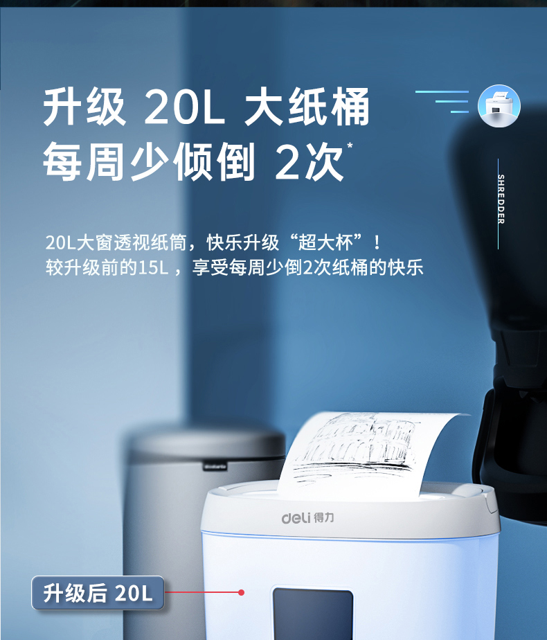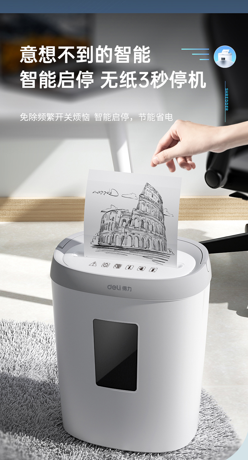 得力 deli 4級保密個人家用碎紙機(單次5張 20L 持續(xù)5分鐘 可碎卡)33186W 白