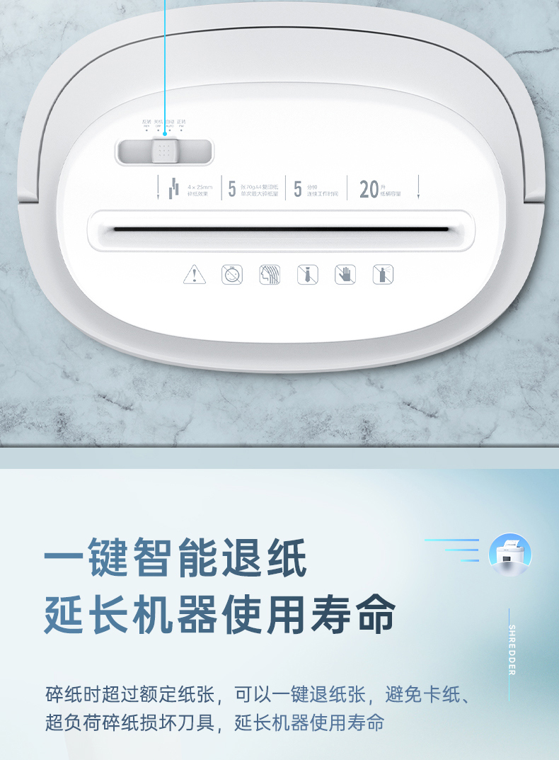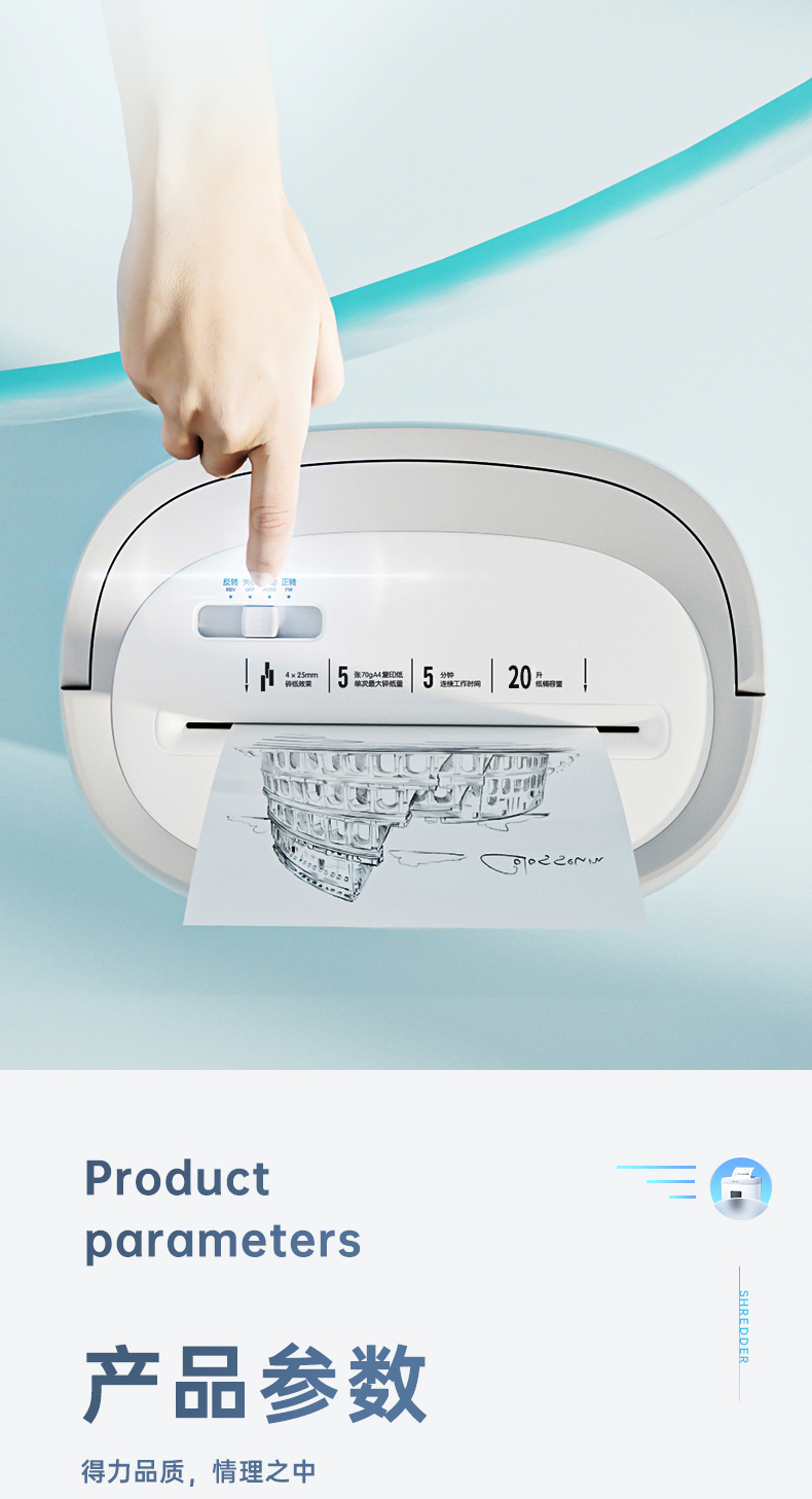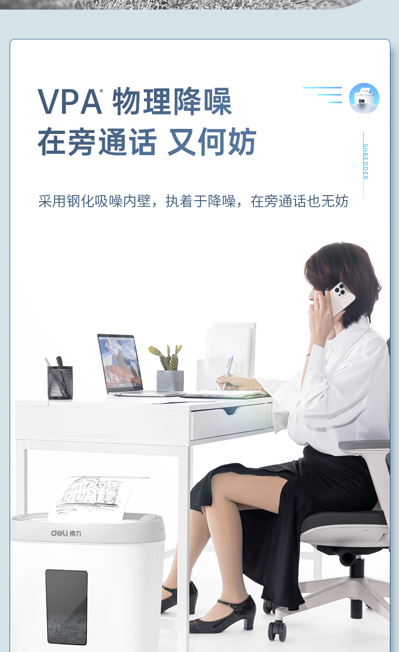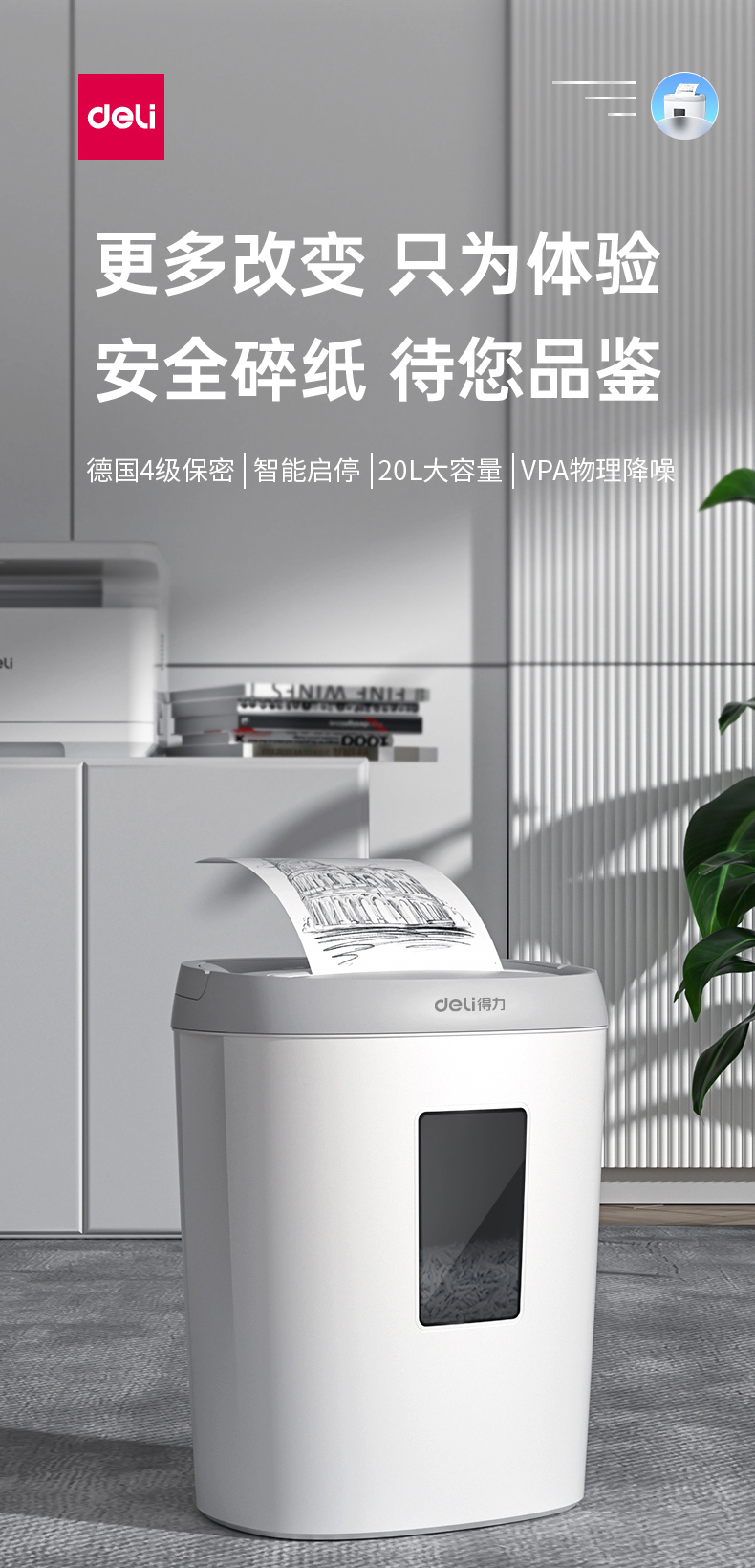 得力 deli 4級保密個人家用碎紙機(單次5張 20L 持續(xù)5分鐘 可碎卡)33186W 白