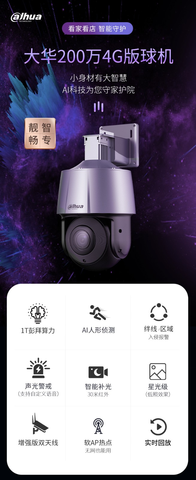 大華高清監(jiān)控?cái)z像頭手機(jī)wifi360度遠(yuǎn)程室外全景球機(jī)(256GB)
