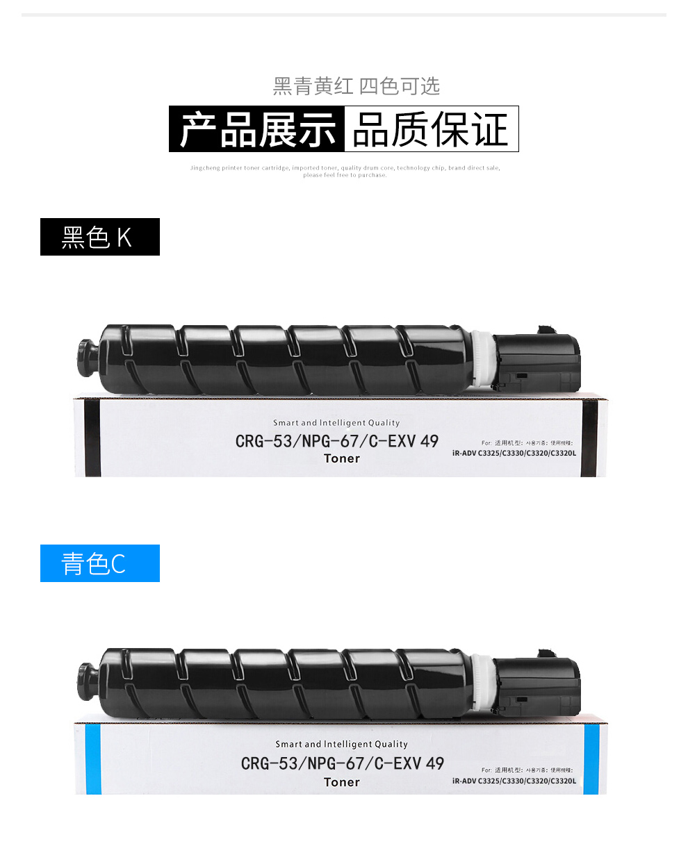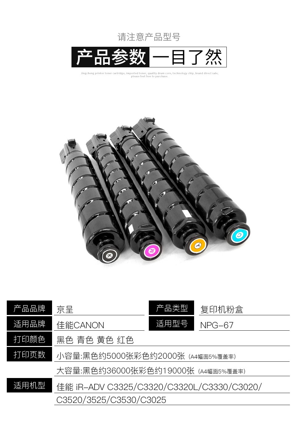 【薦】適用佳能復(fù)印機NPG-67粉盒C3020碳粉C3520 C3325墨盒C3320L墨粉筒3025硒鼓 NPG-67大容量 四色套裝(黑青紅黃含載體)