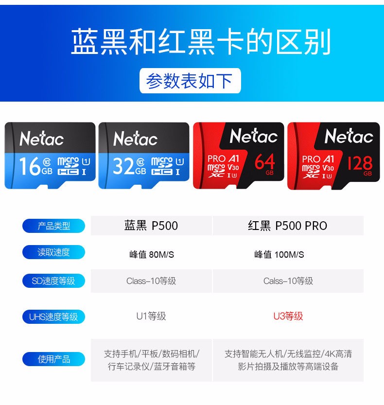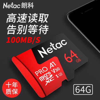 朗科(Netac)TF卡 監(jiān)控?cái)z像頭手機(jī)存儲(chǔ)microsd卡航拍無人機(jī)運(yùn)動(dòng)相機(jī)內(nèi)存卡 64G U3 P500pro 高速4K拍攝